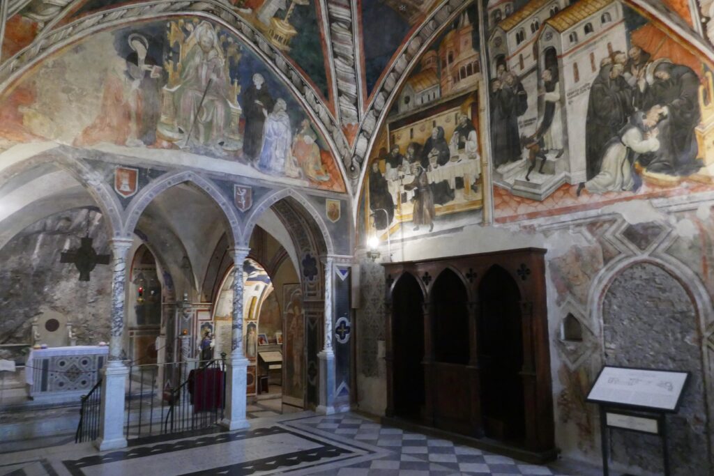9:30. Inicio visita guiada en español a los monasterios incrustados en la roca de San Benedetto y Santa Scolastica, cuna del movimiento benedictino y joyas de la arquitectura y el arte medievales.